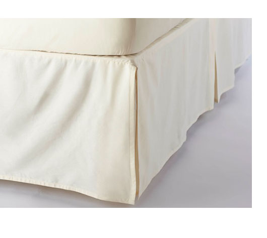 100% organic cotton. A tailored basic, our sateen skirt has a single inverted pleat on each side and split corners to accommodate bedposts neatly. Loomed to a 300-thread count, it has the same buttery feel and lustrous look as our sateen sheeting. Plain-weave cotton deck. 16" drop.