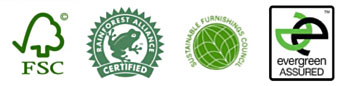 Organic goose feathers and down Fill Options FSC certified wood Low VOC wood stain Our Goal