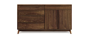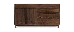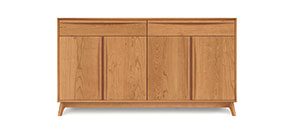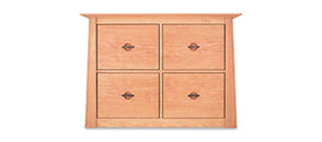 MAPLE CORNER WOODWORKS FILE CABINETS These file cabinets are available in 2,3 & 4 file drawer high format, as standard and lateral file drawers, and in either Harvestmoon, Shaker, Canterbury or Horizon styles. Optional rolling castors and locks are also available. 24" high credenzas will store under Maple Corner Woodworks desks.